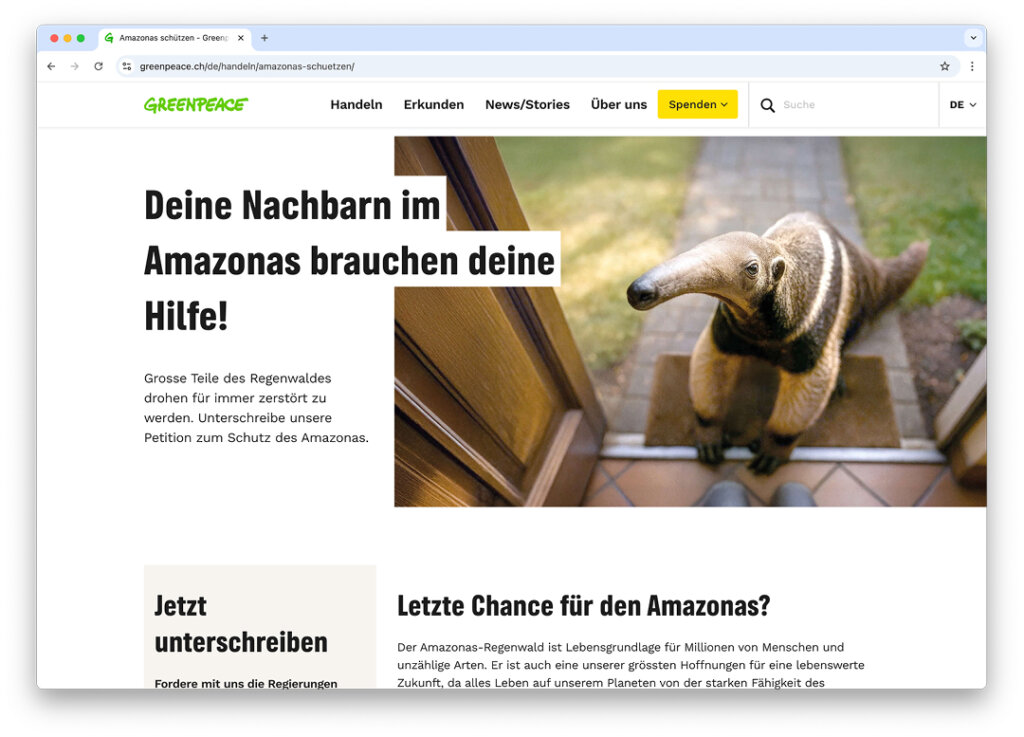 Den Abschluss macht das umfangreichste Mailing des Jahres von Greenpeace mit einem A2-Poster mit zwei klingelnden Nachbarn an der Wohnungstüre. Dank kleinen Adaptationen kann es zur Mitglieder-Erneuerung, als Spendenaufruf, zur Reaktivierung und zur Akquisition eingesetzt werden.